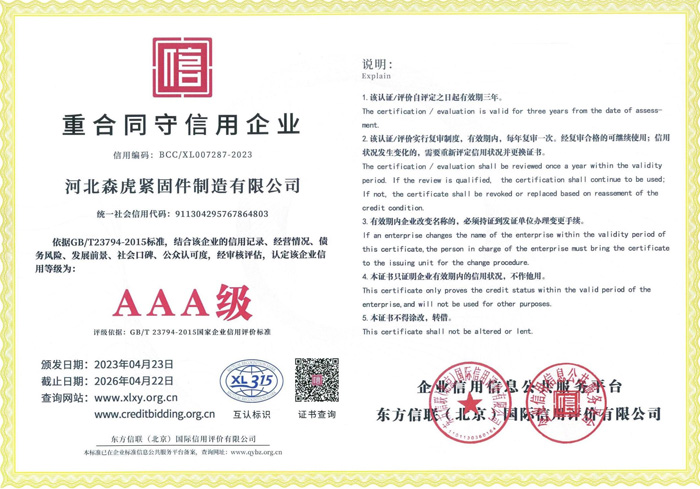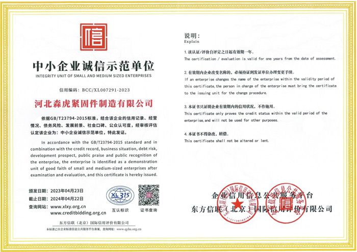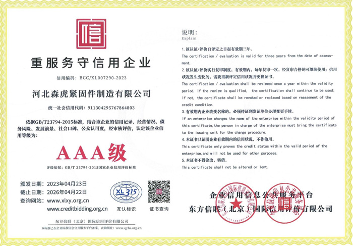 歡迎新老客戶來(lái)電垂詢,來(lái)廠參觀考察,洽談合作河北森虎緊固件制造有限公司